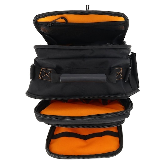 - Ύφασμα canvas 1680 denier ανθεκτικό στο νερό και τη σκόνη με άκαμπτη, αδιάβροχη πλαστική βάση που παρέχει μέγιστη προστασία στα εργαλεία.