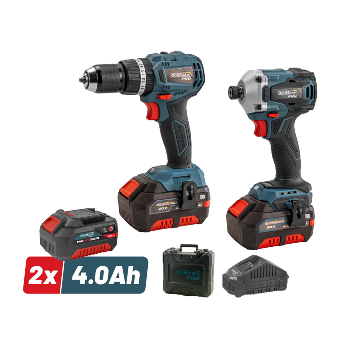 - Bormann - BBP5003 Σετ Κρουστικό Δραπανοκατσάβιδο & Παλμικό Κατσαβίδι Μπαταρίας Brushless 20V Li-Ion σε Βαλίτσα μεταφοράς (2x4.0Ah)
