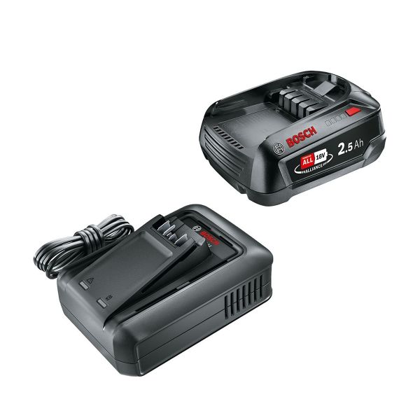 - Ισχυρή μπαταρία ιόντων λιθίου και φορτιστή ο οποίος μπορεί να χρησιμοποιηθεί για όλα τα εργαλεία του συστήματος Power4All 18V της Bosch.