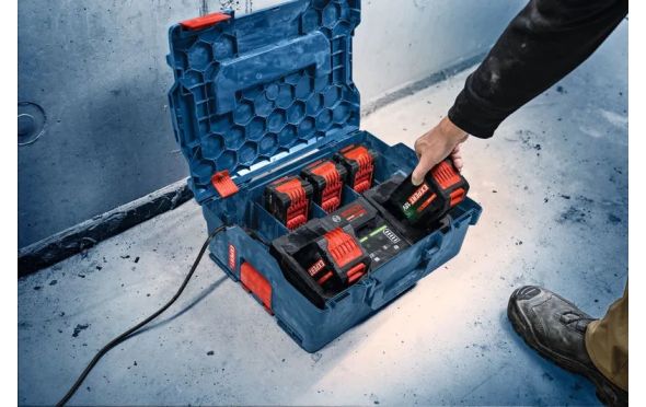 - Χάρη σε ένα ρεύμα φόρτισης 16 A ανά υποδοχή, μπορείς να φορτίσεις πλήρως δύο μπαταρίες EXBA18V-80 σε 39 λεπτά.