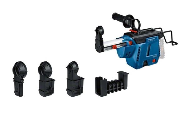 Μπορεί να εγκατασταθεί εκ των υστέρων για χρήση με πολλά δημοφιλή περιστροφικά πιστολέτα ρεύματος και μπαταρίας βαρέως τύπου Bosch Professional και περιλαμβάνει τέσσερα εναλλάξιμα μάτια σκόνης για σταθερά τσοκ ή ταχυτσόκ και για τρυπάνια με διάμετρο έως και 26 mm, καθώς και μια επέκταση για εξαρτήματα με μήκος έως και 265 mm.