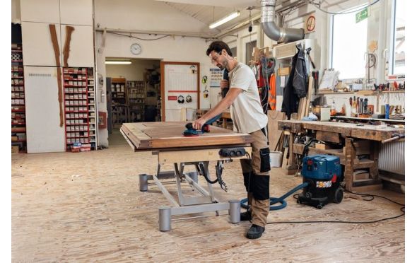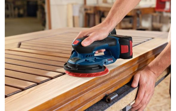 - Η εξαιρετική ισορροπία και η περιοχή συγκράτησης κοντά στο επεξεργαζόμενο κομμάτι του έκκεντρου τριβείου GEX 18V-150-3 Professional προσφέρουν ιδανικό έλεγχο σε όλες τις θέσεις εργασίας.