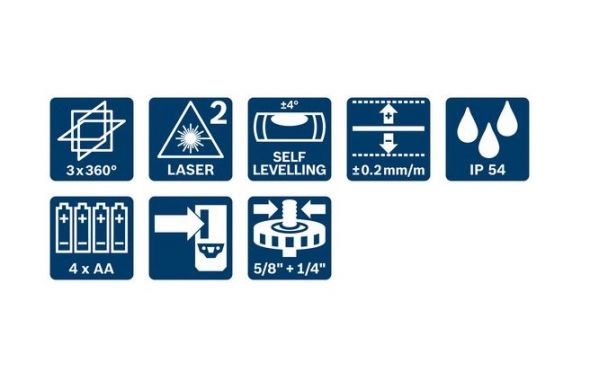 - Υψηλή αποδοτικότητα εργασίας χάρη στις 3 γραμμές 360°: Ταυτόχρονη εκτέλεση οριζοντίων και καθέτων εργασιών χωροστάθμησης σε όλο το χώρο με έναν μόνο εργαλείο.