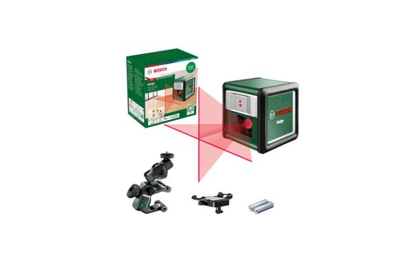 - Απολαύστε εύκολη και ακριβή ευθυγράμμιση σε ένα ευρύ φάσμα εργασιών στο εσωτερικό του σπιτιού με το λέιζερ διασταυρούμενων ακτίνων Quigo.