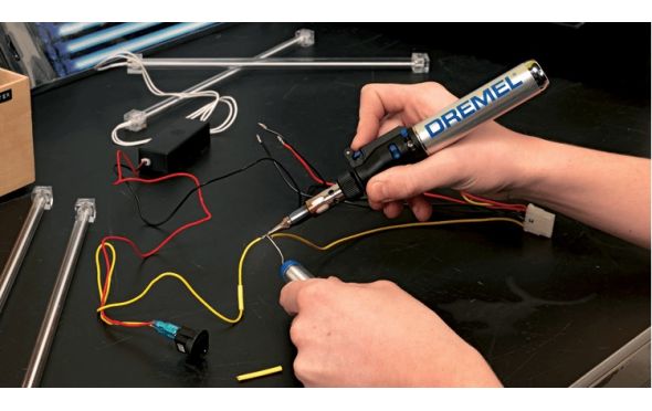 - Διατίθεται με 7 εξαρτήματα για έξι διαφορετικές εφαρμογές: Ετερογενής συγκόλληση, πυρογραφία, θερμοκοπή, ανάγλυφη αποτύπωση με θερμότητα, αφαίρεση βαφής και αυτογενής συγκόλληση.