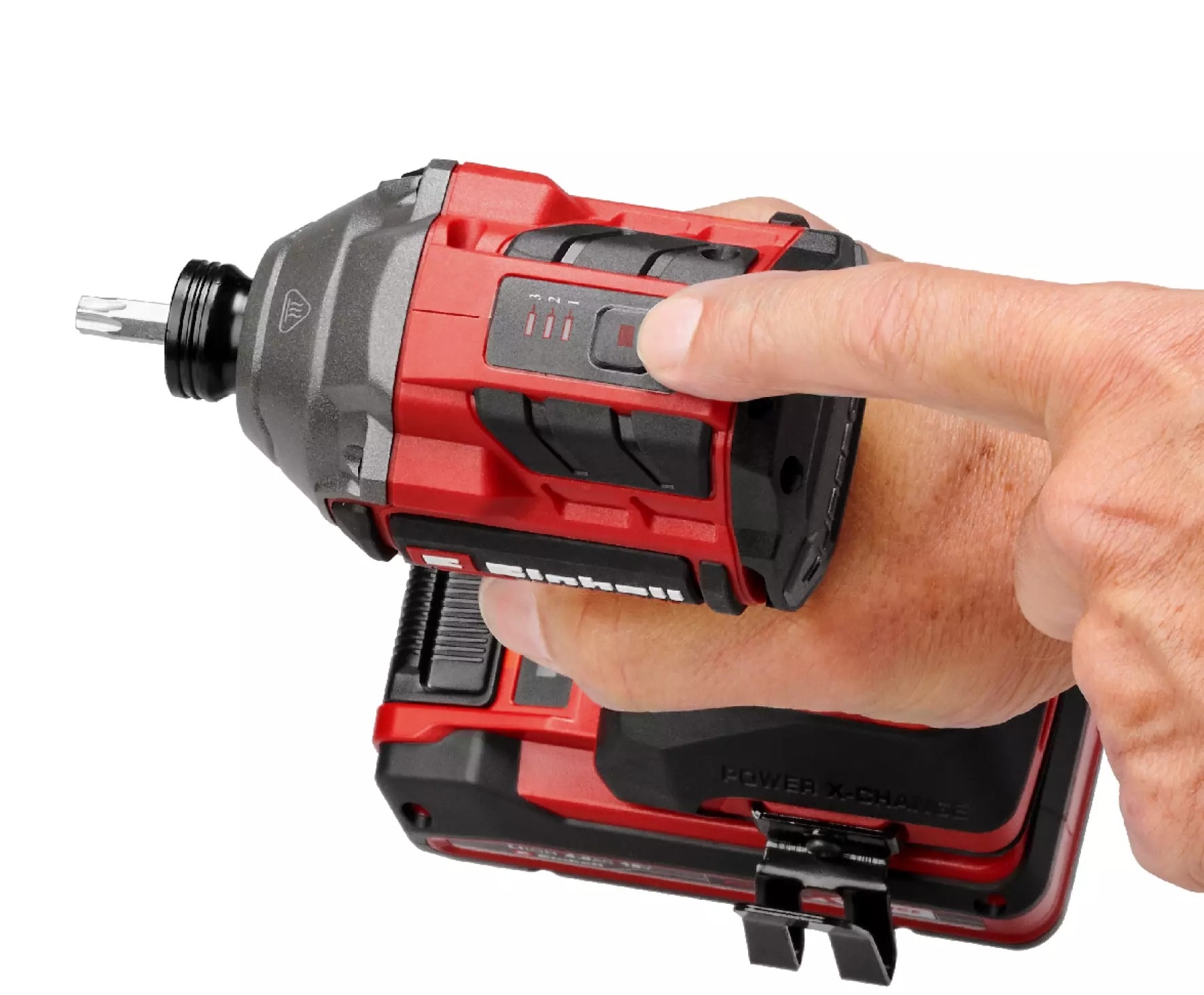 - Με τα τρία επίπεδα ταχύτητας, η ταχύτητα στροφών και η ροπή στρέψης μπορούν να ρυθμιστούν βέλτιστα. Η πρώτη ρύθμιση μπορεί για παράδειγμα να χρησιμοποιηθεί για το απαλό βίδωμα μικρότερων βιδών, ενώ η τρίτη ρύθμιση παρέχει την απαραίτητη ισχύ για την απελευθέρωση των παξιμαδιών των τροχών.