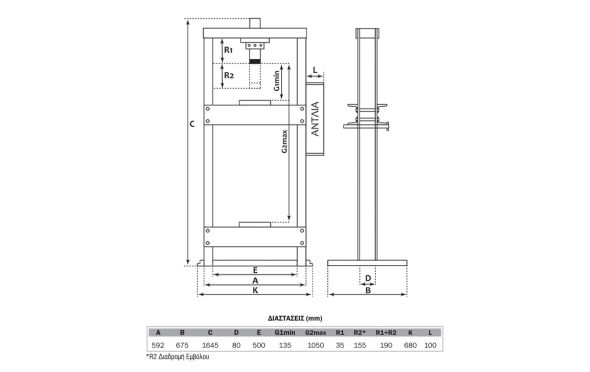 - Διαδρομή εμβόλου 175mm Ασκούμενης Πίεσης 12 ton.