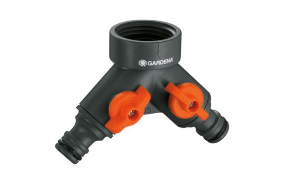 - Η Λοξή Διπλή Παροχή της GARDENA είναι κατάλληλη για βρύσες με σπείρωμα 26,5 mm (G 3/4").