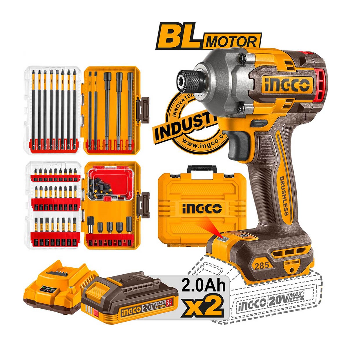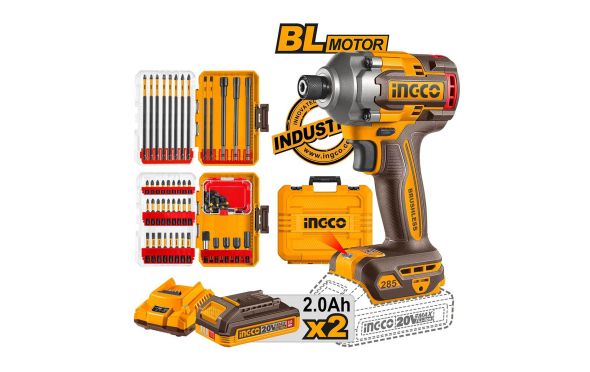 Ingco - COSLI250784E Παλμικό Κατσαβίδι Μπαταρίας & Σετ Μύτες 20V Li-Ion Brushless (2x2.0Ah)