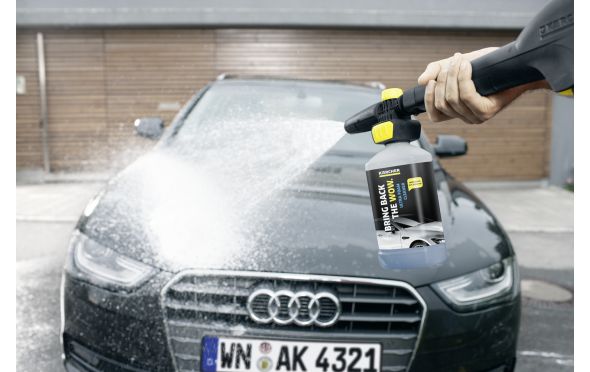 Ακροφύσιο αφρού FJ 10 C Connect 'n' Clean με Αφρό Καθαρισμού Ultra. Το γρήγορο σύστημα αλλαγής για την εφαρμογή καθαριστικού επιτρέπει τη γρήγορη εναλλαγή μεταξύ διαφορετικών καθαριστικών με ένα μόνο κλικ. Η δοσολογία του καθαριστικού μπορεί να προσαρμοστεί εύκολα από το ακροφύσιο αφρού (κίτρινο κουμπί). Το επίπεδο της δέσμης μπορεί να ρυθμιστεί όπως απαιτείται. Κατάλληλο για όλα τα καταναλωτικά πλυστικά μηχανήματα υψηλής πίεσης Kärcher των κατηγοριών Κ2–Κ7.