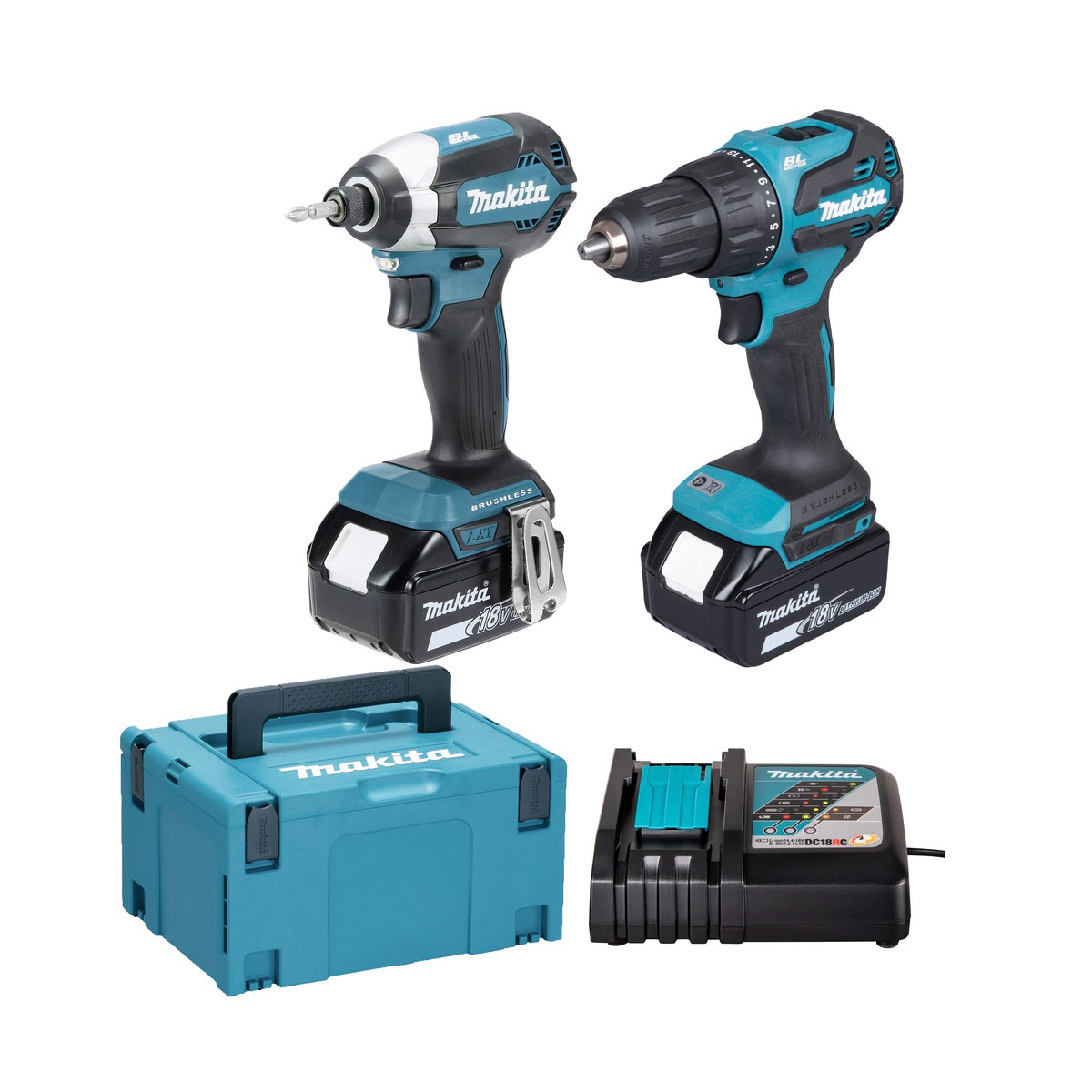 Makita - Σετ DLX2537TJ Κρουστικό Δράπανο DHP490 και Παλμικό Κατσαβίδι DTD153 18V Li-Ion BL Motor σε Makpac (2x5.0Ah)