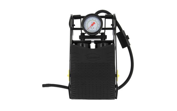 Τρόμπα ποδιού με πιστοποιημένο μανόμετρο για ακριβή ρύθμιση της πίεσης στα λάστιχα. Μέγιστη πίεση 7 bars. Με διπλό έμβολο για υψηλές επιδόσεις και σωλήνα 80 εκατοστών για όλους τους τύπους ελαστικών έως και 19"". Μπρούτζινη βαλβίδα που βιδώνεται εύκολα στη βαλβίδα του ελαστικού για καλύτερο και ακριβέστερο φούσκωμα. Πλαστική βάση για καλύτερη σταθερότητα.