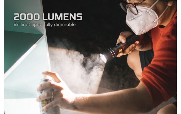 - Διαθέτει φακό 2.000 lumen με ζουμ 4x και C.O.B φως εργασίας 500 lumen. Και τα δύο φώτα διαθέτουν επιλογή ρύθμισης φωτεινότητας με προγραμματιζόμενη μνήμη.