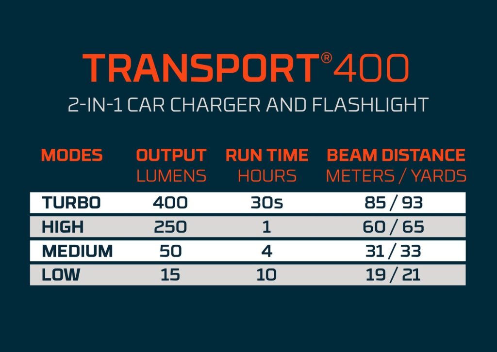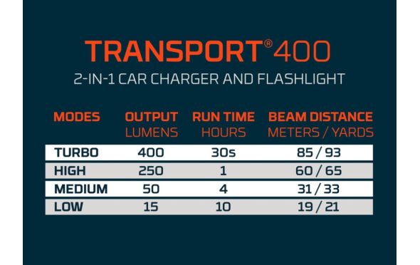 - Ο φακός TRANSPORT 400 της ΝΕΒΟ είναι ένας μικρός, επαναφορτιζόμενος φακός γεμάτος με χρήσιμα χαρακτηριστικά.