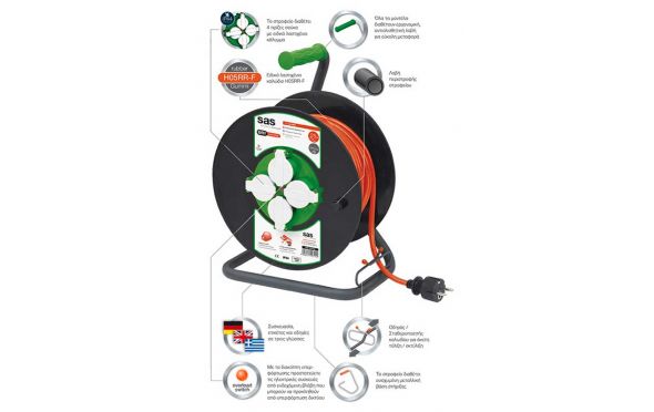 SAS - Στροφείο καλωδίου REEL DRY εξωτερικού χώρου 4 Θέσεων 3 Χ 1.5 - 25Μ