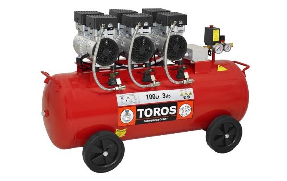 TOROS - Αεροσυμπιεστής Μονομπλόκ Χαμηλού Θορύβου Oilfree 100Lt - 3.0Hp(3x1Hp)