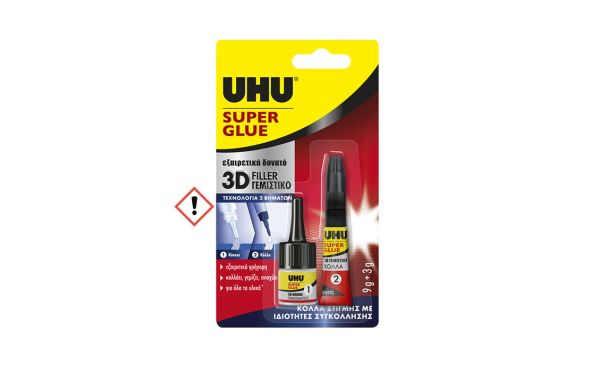 UHU - Super Glue 3D Filler Κόλλα Στιγμής 2 Βημάτων 9+3g