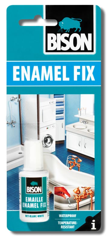 Κόλλα επισκευής σμάλτου Bison Enamel Fix 20ML, με βουρτσάκι για καλύτερη εφαρμογή, για εμαγιέ και άλλες λευκές επιφάνειες, αδιάβροχη και με αντοχή σε υψηλές θερμοκρασίες.