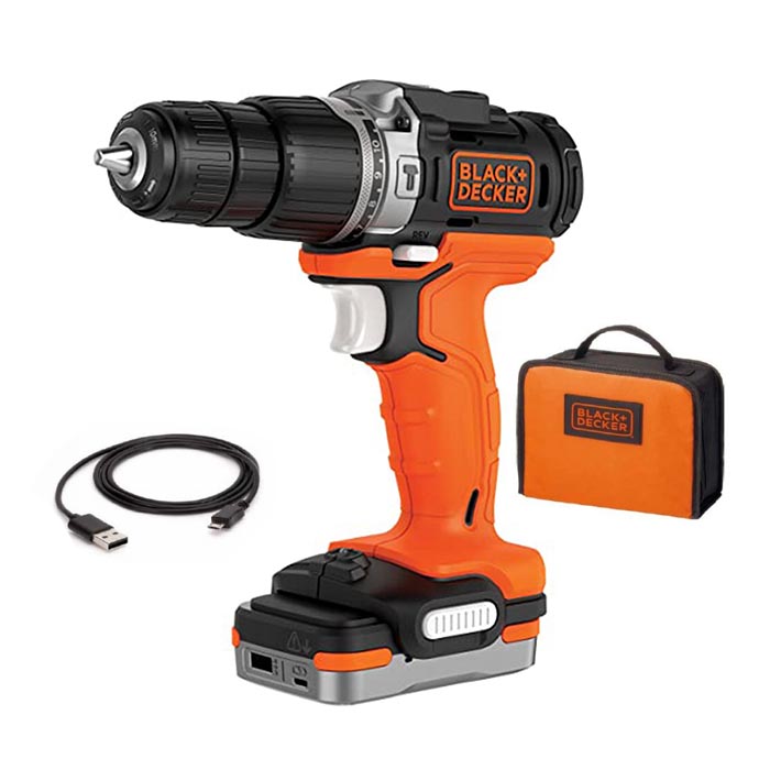 Black & Decker - BDCHD12S1 Κρουστικό Δραπανοκατσάβιδο με USB Φόρτιση 12V Li-Ion (1x1.5Ah)
