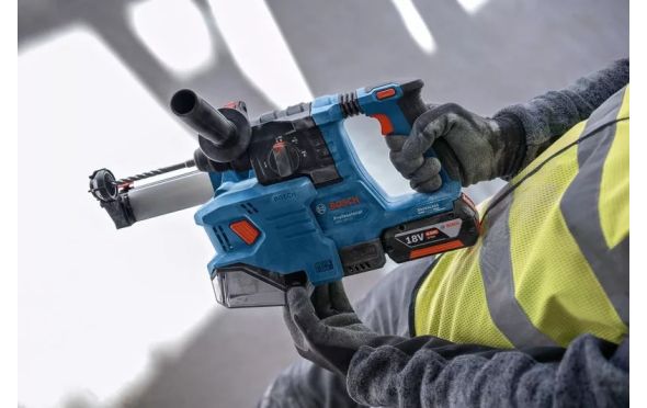Μυϊκή καταπόνηση, απροσδόκητα τραντάγματα και εισπνοή σκόνης είναι μόνο μερικοί από τους κινδύνους που αντιμετωπίζετε κατά το τρύπημα σε μπετόν. Ευτυχώς, αναπτύξαμε το περιστροφικό πιστολέτο GBH 18V-22 Professional, για να κάνουμε την εργασία σας πιο άνετη. Αυτό το εργαλείο είναι συμπαγές, ελαφρύ και εργονομικά σχεδιασμένο με καλά καθορισμένο κέντρο βάρους, έτσι θα το βρείτε ευκολότερο και λιγότερο κουραστικό τον χειρισμό του, ειδικά κατά το τρύπημα πάνω από το κεφάλι. Διατηρείτε τον έλεγχο και μειώνονται οι κραδασμοί στα χέρια και στους βραχίονές σας χάρη στο KickBack Control και στο Vibration Control. Συνδέστε το πιστολέτο στον απορροφητήρα σκόνης GDE 18V-12 Professional με ένα μόνο κλικ για έναν καθαρότερο χώρο κατά την εργασία σας. Και μπορείτε επίσης να ολοκληρώσετε...