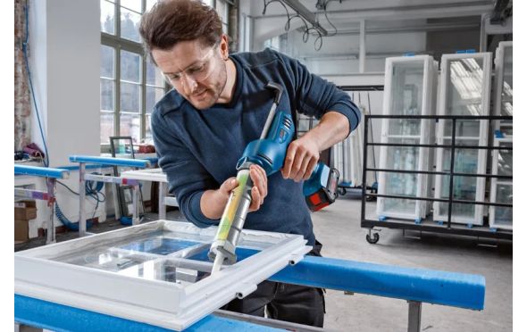 - Το συμπαγές GCG 18V-310 πιστόλι σιλικόνης προσφέρει άνεση μπαταρίας για φυσίγγια έως και 310 ml.