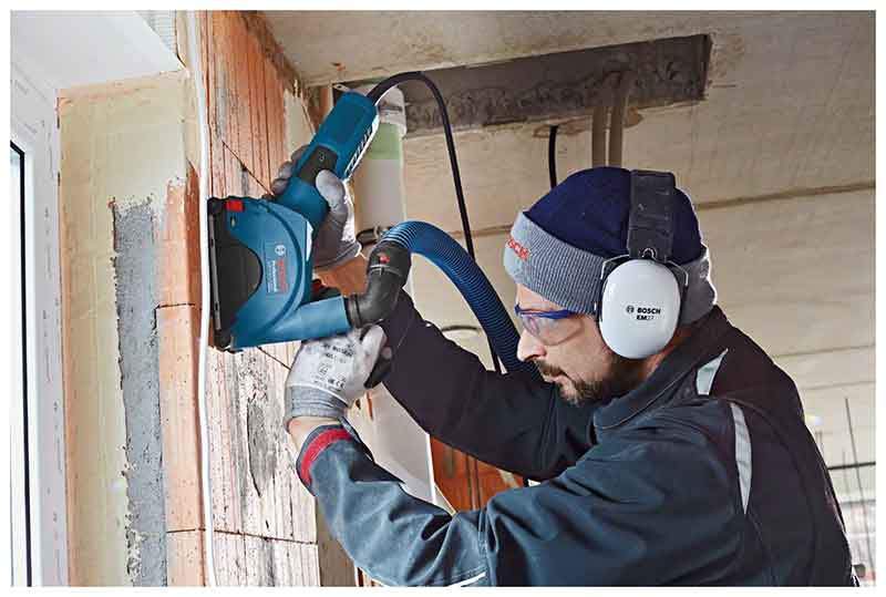 - Ο προφυλακτήρας σκόνης είναι συμβατός με το σύστημα αναρρόφησης της σκόνης Click & Clean Bosch Professional.