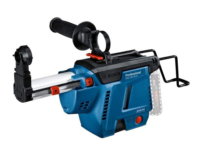 Μπορεί να εγκατασταθεί εκ των υστέρων για χρήση με πολλά δημοφιλή περιστροφικά πιστολέτα ρεύματος και μπαταρίας βαρέως τύπου Bosch Professional και περιλαμβάνει τέσσερα εναλλάξιμα μάτια σκόνης για σταθερά τσοκ ή ταχυτσόκ και για τρυπάνια με διάμετρο έως και 26 mm, καθώς και μια επέκταση για εξαρτήματα με μήκος έως και 265 mm.
