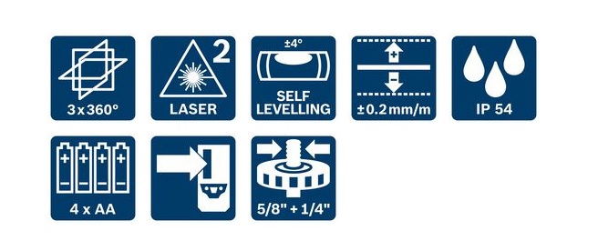 - Υψηλή αποδοτικότητα εργασίας χάρη στις 3 γραμμές 360°: Ταυτόχρονη εκτέλεση οριζοντίων και καθέτων εργασιών χωροστάθμησης σε όλο το χώρο με έναν μόνο εργαλείο.