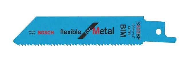 Η σπαθόλαμα S 522 BF Flexible for Metal έχει σχεδιαστεί για χρήση με φορητά δισκοπρίονα. Χάρη στο λεπτό βήμα δοντιού 1,8 mm εξασφαλίζει γρήγορες κοπές. Επιπλέον, η διμεταλλική λάμα (BIM) είναι κατασκευασμένη να έχει μεγάλη διάρκεια ζωής όταν χρησιμοποιείται για χαλύβδινα ελάσματα κανονικής αντοχής. Επίσης, το λεπτό βήμα δοντιού δίνει τη δυνατότητα κοπής μεταλλικών ελασμάτων πάχους από 3 mm έως 8 mm. Το μικρό μήκος της (100 mm) εξασφαλίζει ικανότητα κοπής έως και 50 mm και είναι ιδανική για χρήση με φορητά δισκοπρίονα. Διαθέτει στέλεχός γενικής χρήσης 1/2 ίντσας. Λαμαρίνες μεγάλου πάχους (3-8 mm), γρήγορη κοπή.