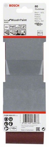 BOSCH - Σετ Ταινιών Λείανσης 3 τεμαχίων 75x533mm - K80