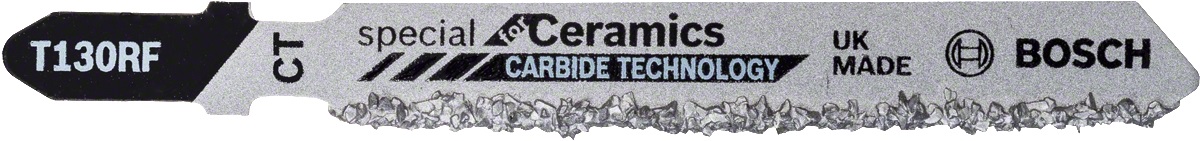 Η Λάμα σέγας T 130 RIFF Special for Ceramics είναι ιδιαίτερα ανθεκτική κατά τη δημιουργία ευθειών κοπών σε ειδικά υλικά. Ο τραχύς κόκκος καρβιδίου της έχει σχεδιαστεί για παρατεταμένη χρήση σε τραχιά κεραμικά υλικά. Επιπλέον, η οδόντωση είναι συγκολλημένη στο εξαιρετικά ελαστικό σώμα από ανθρακοχάλυβα με τεχνολογία καρβιδίου, δίνοντας τη δυνατότητα στη λάμα να κόβει υλικά όπως κεραμικά πλακίδια. Ο τραχύς κόκκος καρβιδίου (K30) κόβει μαλακά κεραμικά πλακίδια με πάχος 5-15 mm. Για χρήση με σέγες και συστήματα σύσφιξης με στέλεχος Τ.