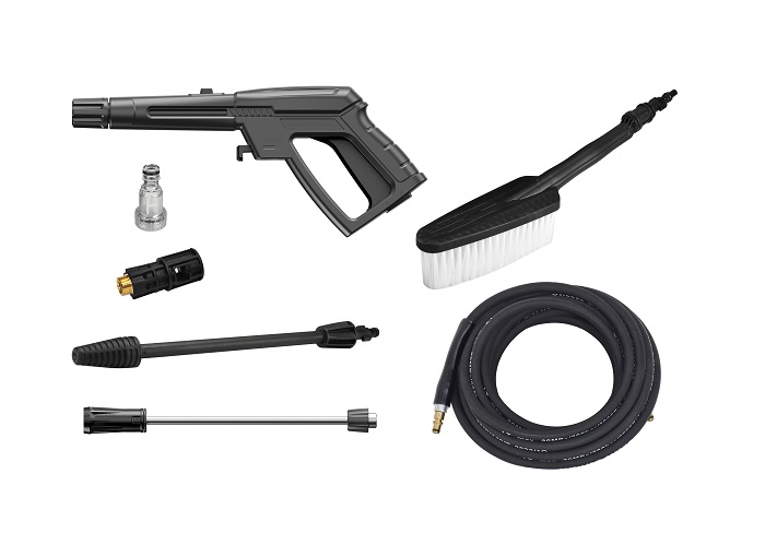 Σύστημα αυτόματης έναρξης - παύσης λειτουργίας (A.S.S.). Με ενσωματωμένο δοχείο απορρυπαντικού. Αυτόματη ανέμη και σωλήνα υψηλής πίεσης. Κεφαλή αντλίας από αλουμίνιο.Ρυθμιζόμενη χειρολαβή πάνω-κάτω (2 θέσεις) για εύκολη μεταφορά και αποθήκευση.Με 2 αυλούς και σταθερή βούρτσα.