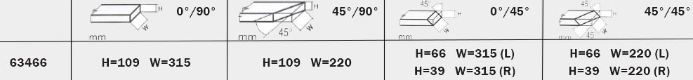 | 0°x 45° L (HxW) 66x315mm |