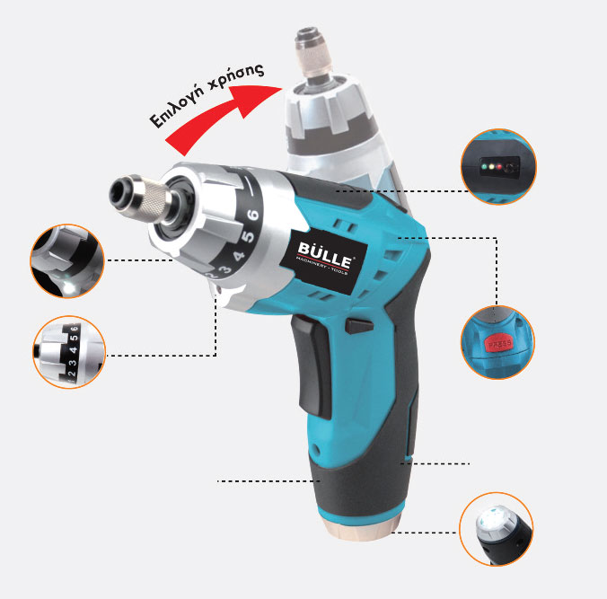 BULLE - Επαναφορτιζόμενο Κατσαβίδι Λιθίου 3.6V Με 43 Εξαρτήματα και Βαλιτσάκι