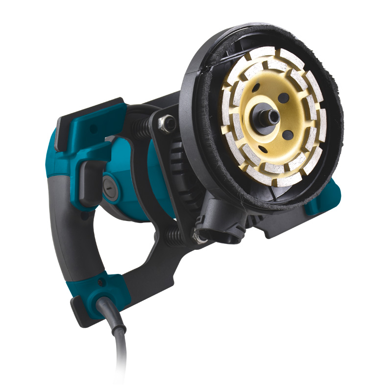 Τριβείο μπετού με ισχυρό κάθετο κινητήρα 1800 Watt.Με διαμαντόδισκο με 2 σειρές διαμαντιών 125x22,2 mm.Με ρυθμιζόμενη ταχύτητα με ποτενσιόμετρο για αποδοτικές εργασίες σε διάφορα δομικά υλικά.Εργονομική λαβή τύπου ‘’Η’’ με 4 αντικραδασμικά ελατήρια για ξεκούραστη χρήση.Με διαιρούμενο προστατευτικό κάλυμμα σκόνης για προσέγγιση των ακμών.Με σωλήνα σπιράλ επεκτεινόμενο 1.2 έως 3.0 μέτρα.Με 2 υποδοχή για σύνδεση με σκούπα αναρρόφησης (Φ36-Φ40mm) & (Φ42-Φ46mm).