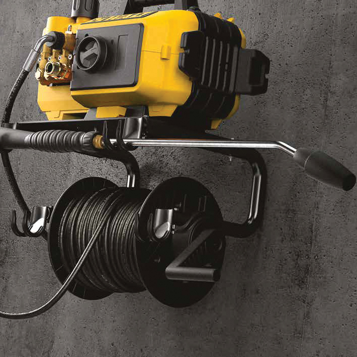 Μονάδα τοίχου με ενσωματωμένο σωλήνα παροχής νερού. Ασφαλίζει αυτόματα στη βάση και  απασφαλίζει και απασπάται εύκολα χάρη στο κουμπί. Συμβατό με τα πλυστικά της Dewalt: DXPW001CE, DXPW002CE, DXPW003CE
