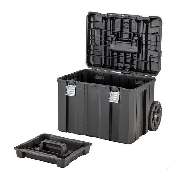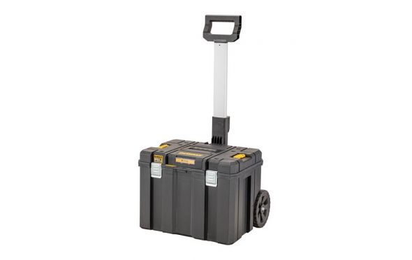 DEWALT - DWST83347-1 TSTAK IP54 Εργαλειοθήκη Τροχήλατη με Πτυσσόμενη Λαβή. Κατασκευασμένο και δοκιμασμένο σύμφωνα με τα υψηλότερα πρότυπα για να εξασφαλίσει μεγάλη διάρκεια ζωής και αντοχή, η TSTAK ™ κρατά όλα όσα χρειάζεστε για τη δουλειά που οργανώνεται ακριβώς όπως θέλετε. Μεταλλικά κουμπώματα - αυξάνοντας τη δύναμη, την αντοχή και τη μακροζωία. Κλείδωμα μέσω Λουκέτου (Δεν Περιλαμβάνεται) - Για Πρόσθετη Ασφάλεια. IP54 Water Resistant - Παρέχει προστασία από νερό και σκόνη σε εργαλεία και εξαρτήματα στο εσωτερικό του κουτιού. Τηλεσκοπική λαβή - Για Εύκολη Μεταφορά Βαρέων Εργαλείων. Ανθεκτικοί τροχοί διαμέτρου 7".