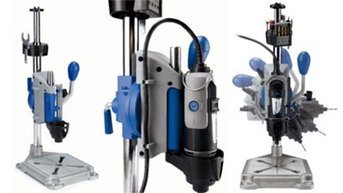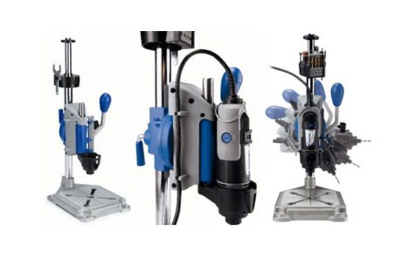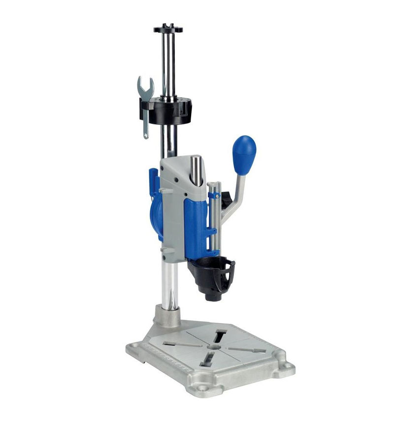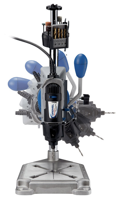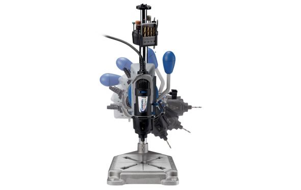 Το στήριγμα που χρειαζόσασταν για επεμβάσεις ακριβείας στα έργα σας Αυτό είναι η τέλεια λύση για μια σταθερή εργασίας με το εργαλείο σας Dremel. Τρυπά κάθετα ή υπό γωνία, ρυθμιζόμενο σε βήματα 15 μοιρών. Συγκρατεί το εργαλείο οριζόντια για γυάλισμα και τρίψιμο Η ενσωματωμένη, τηλεσκοπική βάση εργαλείου συγκρατεί το εργαλείο με τον εύκαμπτο άξονα (225). Αποθήκευση των εξαρτημάτων στο εργαλείο. Η διαχείριση καλωδίου κρατά το καλώδιο στερεωμένο με ασφάλεια. Σημάδια βάθους για ικανοποιητική ρύθμιση του βάθους. Σημάδια βάσης (μετρικό σύστημα και ίντσες).
