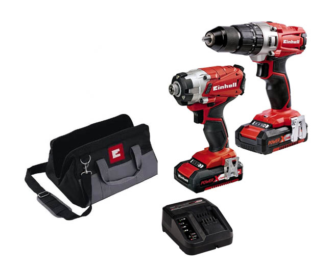 - EINHELL - Σετ TE-CD 18/2 Li Δραπ/δο Kρουστικό 18V και TE-CI 18/1 Li Παλμικό Kατσαβίδι 18V Li-Ion σε Τσάντα Μεταφοράς (2x2.0Ah)
