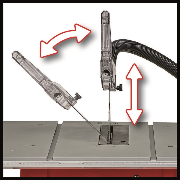 Οδηγός κοπής. Στόμιο εξαγωγής σκόνης. Προφυλακτήρας δίσκου. Σταθερή βάση.