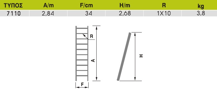 EUROPRO - Σκάλα Αλουμινίου Μονή 1x10. Η σκάλα παρέχει όλες τις ευρωπαικές προδιαγραφές EN131. Μέγιστη αντοχή 150Kg.