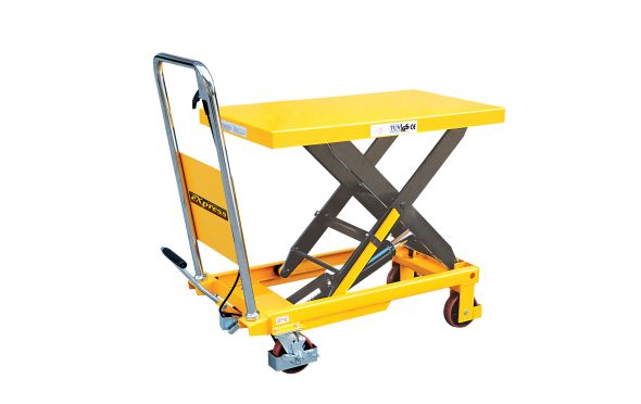 Ο υδραυλικός πάγκος αποτελεί ένα είδος εργαλείου μεταφοράς μεγάλης ανύψωσης το οποίο χρησιμοποιείται για μεταφορά μικρής απόστασης καθώς επίσης και για ανύψωση και χαμήλωμα αγαθών. Επίσης μπορεί να χρησιμοποιηθεί ως στατική εγκατάσταση για συνεργεία.Ικανότητας 300 kg.Ποδοκίνητη υδραυλική λειτουργία.2 τροχούς περιστρεφόμενους με φρένο και γρασσαδόρους . Τροχοί διαστάσεων Φ127.Αντλία ταχείας ανύψωσης.