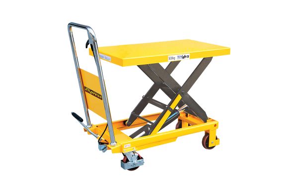 Ο υδραυλικός πάγκος αποτελεί ένα είδος εργαλείου μεταφοράς μεγάλης ανύψωσης το οποίο χρησιμοποιείται για μεταφορά μικρής απόστασης καθώς επίσης και για ανύψωση και χαμήλωμα αγαθών. Επίσης μπορεί να χρησιμοποιηθεί ως στατική εγκατάσταση για συνεργεία. Ικανότητας 500 kg.Ποδοκίνητη υδραυλική λειτουργία.2 σταθερές ρόδες PU και 2 περιστρεφόμενες ρόδες PU με φρένο.Ρόδες διαστάσεων Φ127.