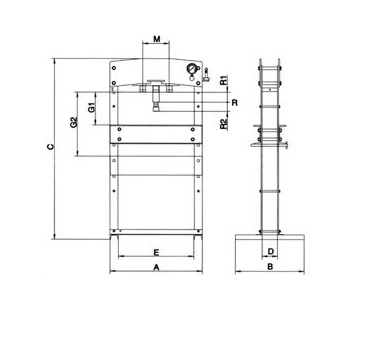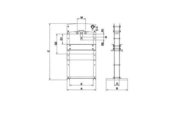 Διαστάσεις: A:805, B:560, C:1510, D:160, E:725, G1min:250, G2max:1125, R1:125, R2:310, M:410