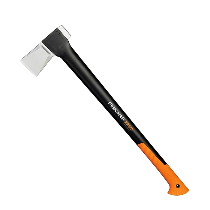- Το τσεκούρι σχισίματος XL X25 της Fiskars είναι ιδανικό για μεγάλους κορμούς με διάμετρο μεγαλύτερη από 30 cm. Η παχιά λεπίδα του δίνει επιπλέον ώθηση για να χωρίσει ακόμα και τα πιο χοντρά κούτσουρα.