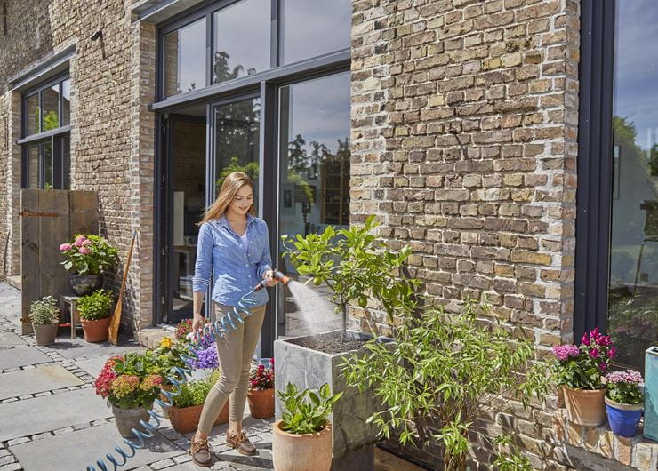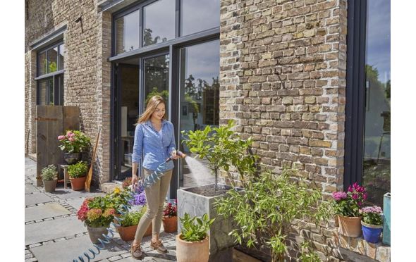 Το Σετ Λάστιχο Σπιράλ με Συνδέσμους είναι η άνετη λύση για το πότισμα των φυτών σε μπαλκόνια, αίθρια ή μικρούς κήπους. Μετά τη χρήση, το λάστιχο τυλίγεται αυτόματα και καταλαμβάνει ελάχιστο χώρο. Έτσι, δεν χρειάζεται πλέον να ξετυλίγετε και να τυλίγετε το λάστιχο. Το λάστιχο έχει μήκος 10 μέτρα και είναι ιδανικό για το πότισμα φυτών σε μικρές περιοχές. Το παρεχόμενο παλμικό ψεκαστικό εφαρμόζει σωστά στο χέρι, η ποσότητα νερού μπορεί να ρυθμιστεί ελεύθερα και η παλμική σκανδάλη διαθέτει μοχλό ασφάλισης. Το Σετ Λάστιχο Σπιράλ με Συνδέσμους GARDENA είναι το πρακτικό ολοκληρωμένο σύστημα για το πότισμα του μικρού σας παραδείσου. Με Ακροφύσιο Σήτα και Ρακόρ.