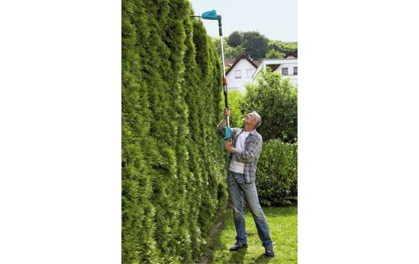 - Έτσι, μπορείτε να κόψετε ψηλούς φράχτες με λιγότερη προσπάθεια ενώ βρίσκεστε με ασφάλεια στο έδαφος - σε ύψος έως τρία μέτρα, όταν η τηλεσκοπική λαβή είναι πλήρως εκτεταμένη.