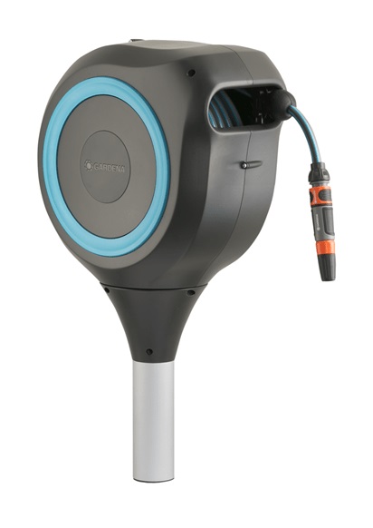 - Επιπλέον, αυτό το καρούλι λάστιχου σας σώζει από την κουραστική συστροφή, τη κύλιση και τα βρώμικα χέρια:Ένα σύντομο τράβηγμα στο άκρο του λάστιχου απελευθερώνει την κλειδαριά και ένα ενσωματωμένο χαλύβδινο ελατήριο φέρνει πίσω το λάστιχο του κήπου πλήρως αυτόματα και αξιόπιστα.