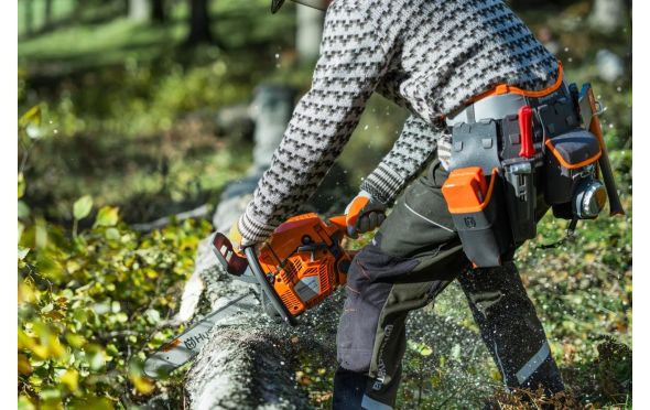 - Η αναβαθμισμένη εμπειρία κοπής εξασφαλίζεται επίσης από τη βελτιωμένη δυνατότητα εκκίνησης και από χαρακτηριστικά όπως τα χρωματιστά σημάδια υλοτομίας και το σταθερό παξιμάδι λάμας.
