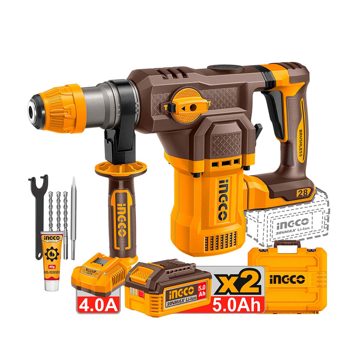 Ingco - CRHLI202862E Περιστροφικό Κρουστικό Σκαπτικό Μπαταρίας SDS-Plus 20V Li-Ion Brushless 4.5J - (2x5.0Ah)
